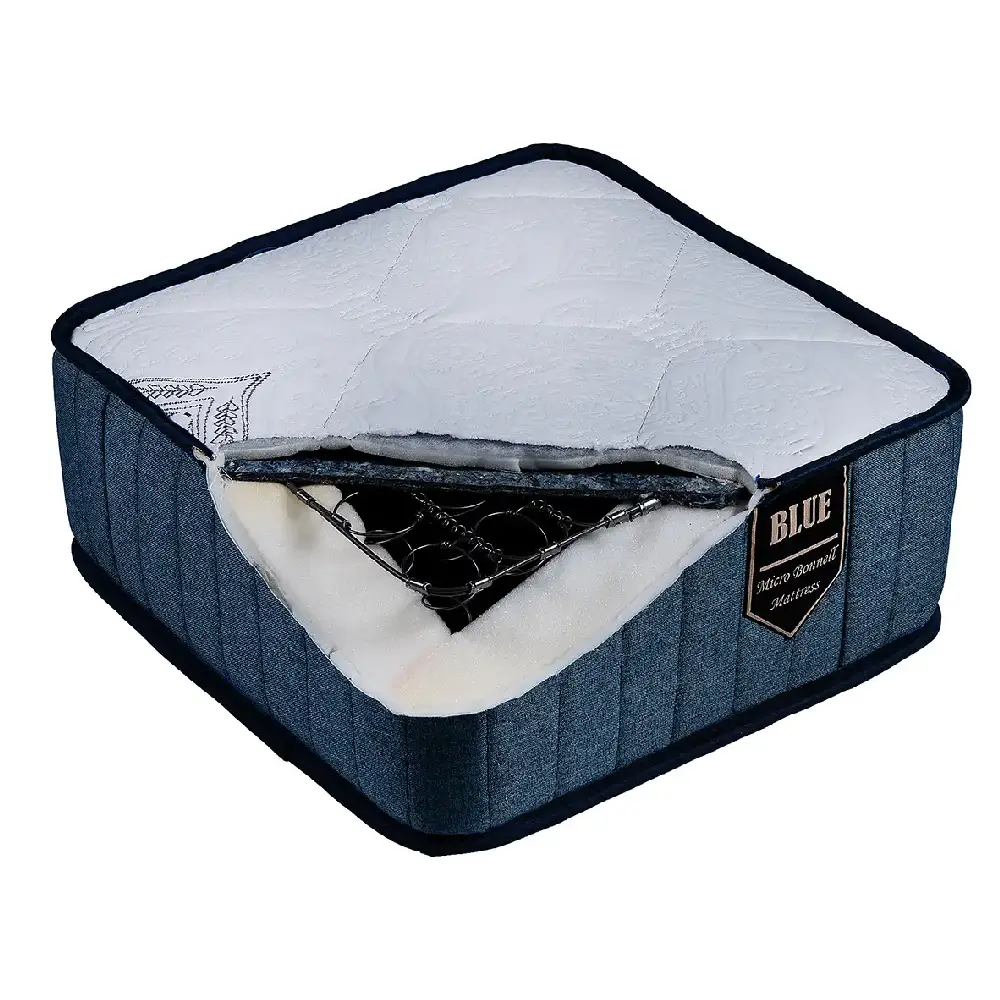 تشک بلو به عنوان اقتصادیترین تشک شرکت دریم لند شناخته میشود و از نوع تشکهای فنر متصل میکروبونل با قطر مفتول ۱.۸ میلیمتر است. بر روی فنرهای این تشک، نمد با گرماژ ۱۲۰۰ گرم قرار دارد و سطح آن با پارچه پنبهدوزی شده ۷۵۰ گرم پوشیده شده است.
