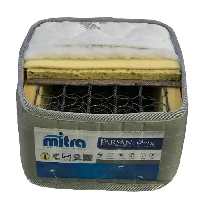 تشک یک نفره مدل پرسان (Parsan) از برند میترا یکی از مدل های طبی فنر متصل تولیدی این شرکت است. تشک با سختی متوسط و مناسب افراد با مشکلات کمر و ستون فقرات نه چندان جدی به همراه ۷۲ ماه (۶ سال) گارانتی معتبر، با ۲۳ سانتی متر ارتفاع، از مختصر ویژگی های تشک طبی فنری پرسان می باشد.