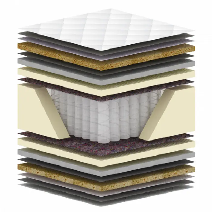 بر روی این نمد، لایهای از اسفنج یورو لوکس ۳۰ کیلویی با ضخامت ۴ سانتیمتر قرار داده شده که کیفیت بالای آن تضمین شده است. منظور از اسفنج ۳۰ کیلویی، وزن اسفنج در یک متر مکعب است.